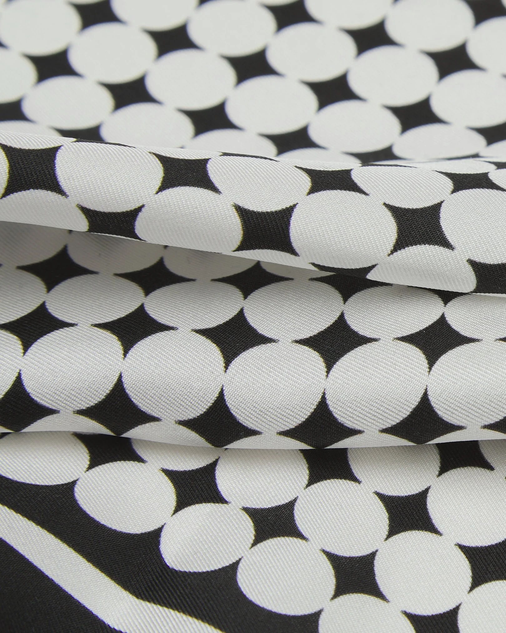 The geometric circle patterns which make up the 'Keaton' pure silk pocket square create an interesting op-art effect - white disks or black diamonds?