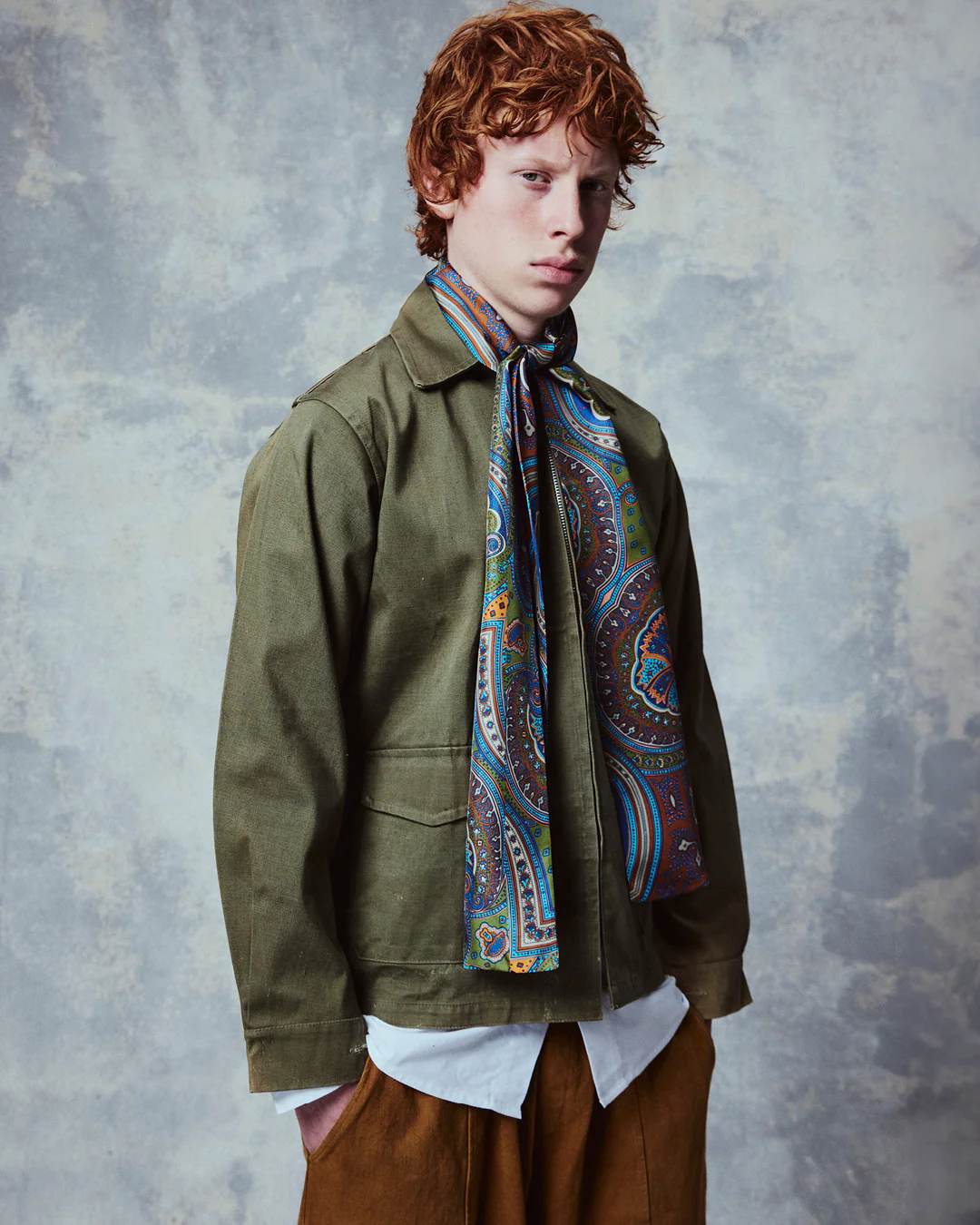 'The Montreal' pure silk scarf for men is decorated with multicoloured and intricate abstract patterns with occasional hints of traditional paisley forms. This is a truly psychedelic design, yet steers clear of the traditional day-glo colourway, opting for a more organic, earthy palette. 'The Montreal' is a scarf inspired for the true 1960's aesthete.