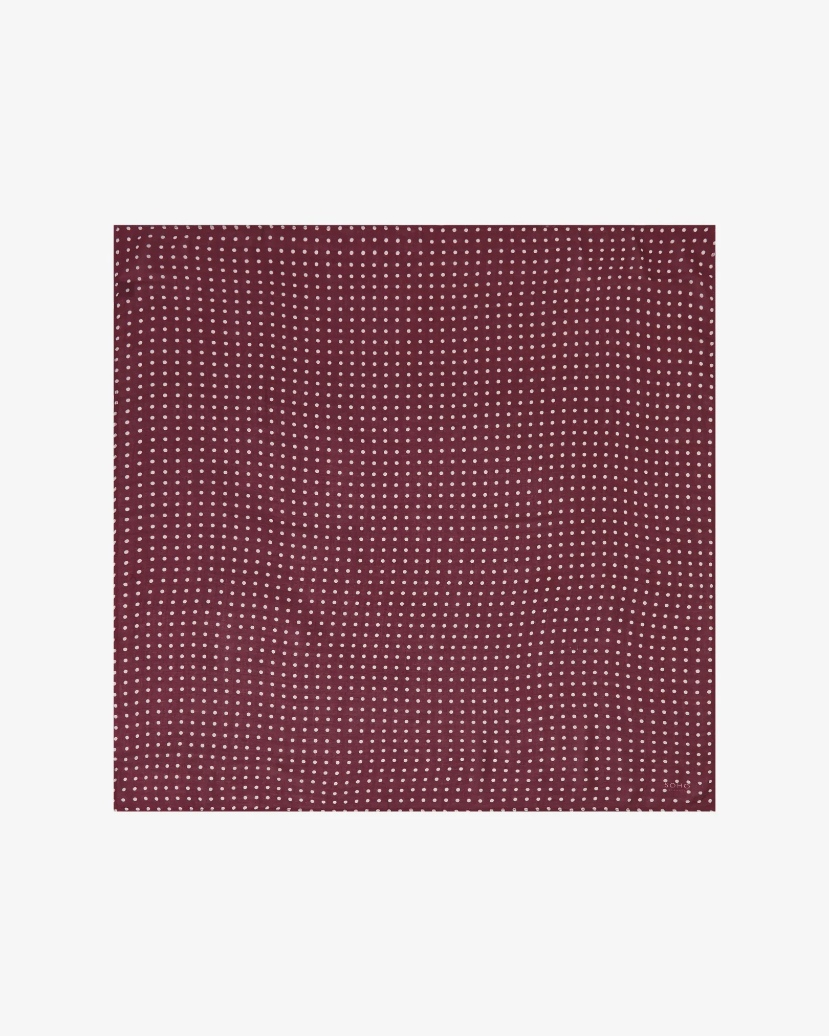The Sapporo Bohemian Style Bandana is decorated with a white polka dot pattern against a maroon background.