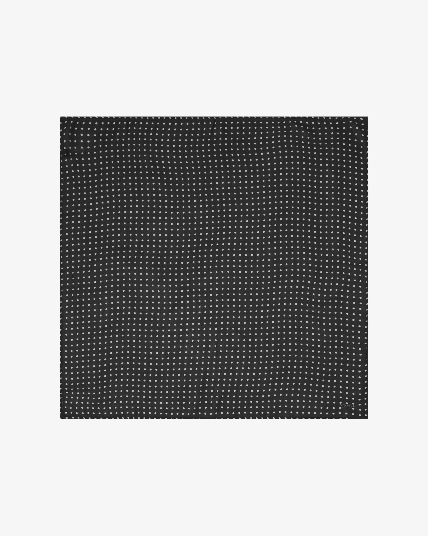 The Shinagwa Bohemian Style Bandana is decorated with a white polka dot pattern against a black background.