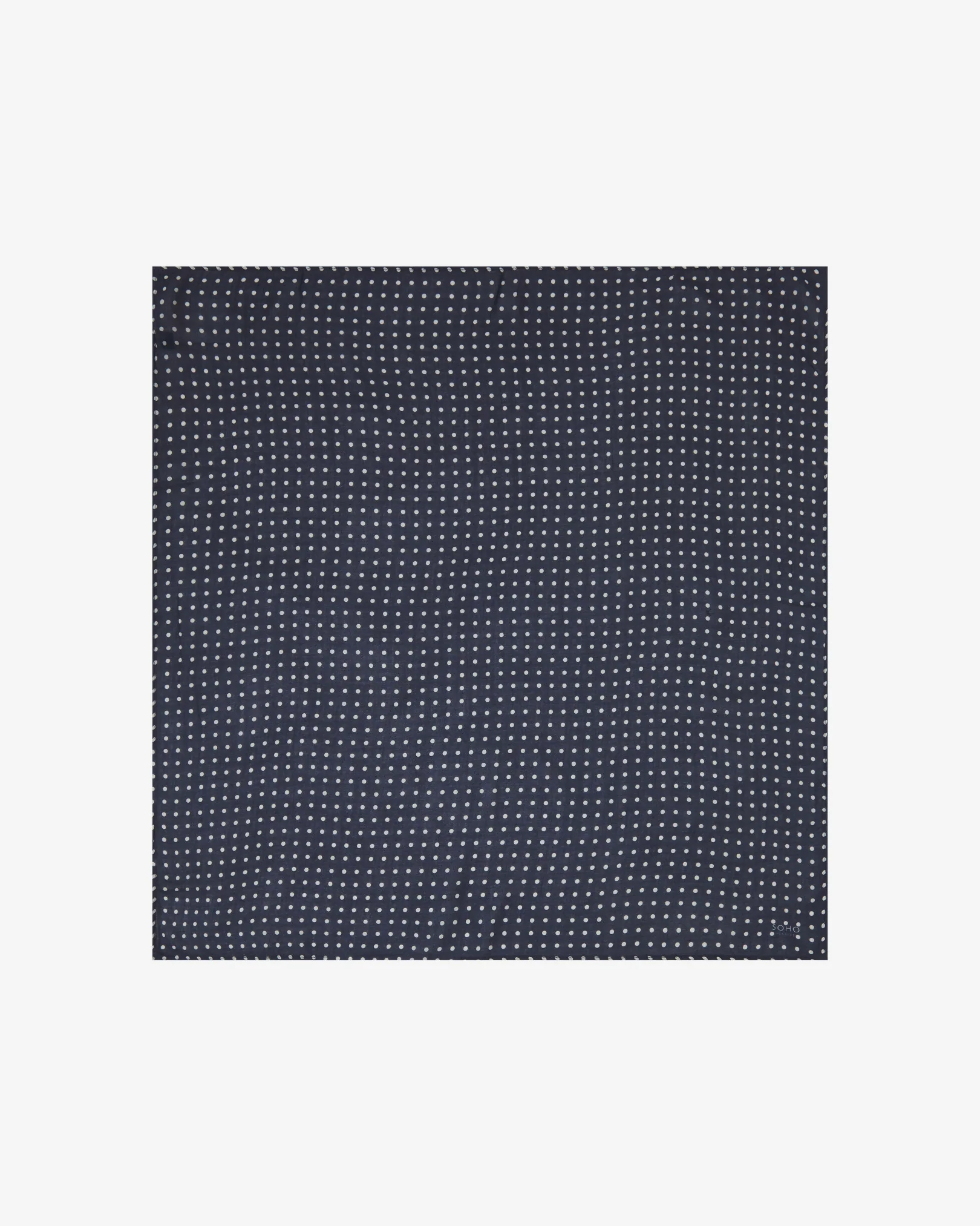 The Westminster Bohemian Style Bandana is decorated with a white polka dot pattern against a navy blue background.